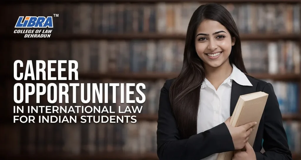 Career Opportunities in International Law for Indian Students To Libra College of law International law presents a great and bright career to interested Indian students who have a keen interest in international relations and justice. This area is concerned with the laws that regulate the relationships between states, international organisations, and international institutions, opening up many career opportunities in international law. Such a wide scope of human rights and trade law, including environmental protection and international arbitration, is increasing. By making the right education choice, working on the right experience, and acquiring a global perspective, Indian students can pursue strong careers in the field of international law with their great research, communication, and analytical skills. Top career opportunities for law students in India Have a look at the career opportunities that a law student can look for in India. Go through them one by one. Human Rights Lawyer at the International Level International human rights lawyers operate in protecting the basic human rights among nations, making it one of the most impactful career opportunities in international law. They can act with international courts, non-governmental organisations, and international bodies. This is an advocacy, legal drafting, and research-based position assisting vulnerable populations and facilitating justice on an international scale. Legal Advisor with an International Organisation The legal advisors are employed by international organisations such as the United Nations, WTO, or WHO to provide interpretation of treaties and international agreements. The Indian students in this position assist in making sure that there is an observation of international law in policies. It is a policy-oriented, research-based, and well-grounded in law work. WTO Law Expert and International Trade These are the professionals who are involved in trade agreements, import export policies, and resolutions of disputes between nations, making it one of the key international law career options. Indian WTO law experts help governments and businesses in international trade practises, and therefore, this career is perfect for those who would love to be involved in international commerce and economics. Diplomatic and Foreign Service Positions One of the exams that can be undertaken by international law graduates is the Indian Foreign Service (IFS). All these functions are coupled with the functions of law, international relations, and policy making; they are positions of representing India in international negotiations, treaties, and international forums. International Arbitration Lawyer The international arbitration attorneys are the arbitrators involved in resolving inter-country, inter-company, or inter-investor disputes that do not occur in national courts, making it one of the most specialized international law career options. The Indian students in the field are employed in arbitration bodies and international law firms, and they deal with cross-border commercial disputes by undertaking legal examinations and negotiations. Research and Professional Academic Those students who are interested in teaching and research can become professors, researchers, or policy analysts in international law. They do this through paper writing, advising governments, and developing future legal frameworks using academic institutions. Sum up! International law presents an interesting career perspective to Indian students who are working on international matters of law. As the world is moving towards a more globalised environment, the need to have professionals with knowledge of international rules, treaties, and cross-border laws is becoming strong. Arbitration, human rights, trade, diplomacy, and research represent some of the ways students can establish respectable and significant careers. Again, to be successful in this industry, one should have good legal foundations, research and communication skills, and a global perspective too. Through proper education, exposure, and hard work, Indian students can pursue and excel in international law careers with confidence. If you are also interested in international law and want to study it, then enroll at Libra College of Law. We will help you to have a quality education and a healthy environment.